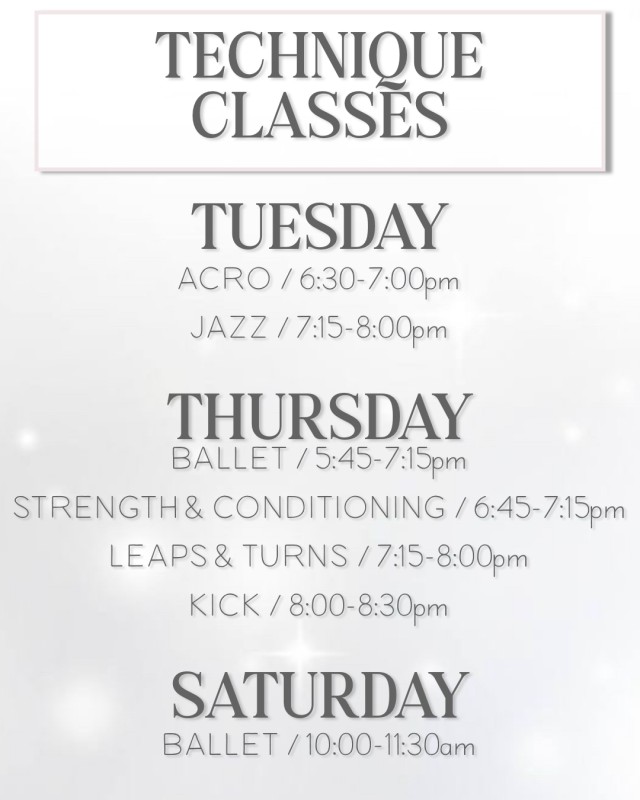 Dancers are welcome to take technique classes on a regular or drop-in basis: